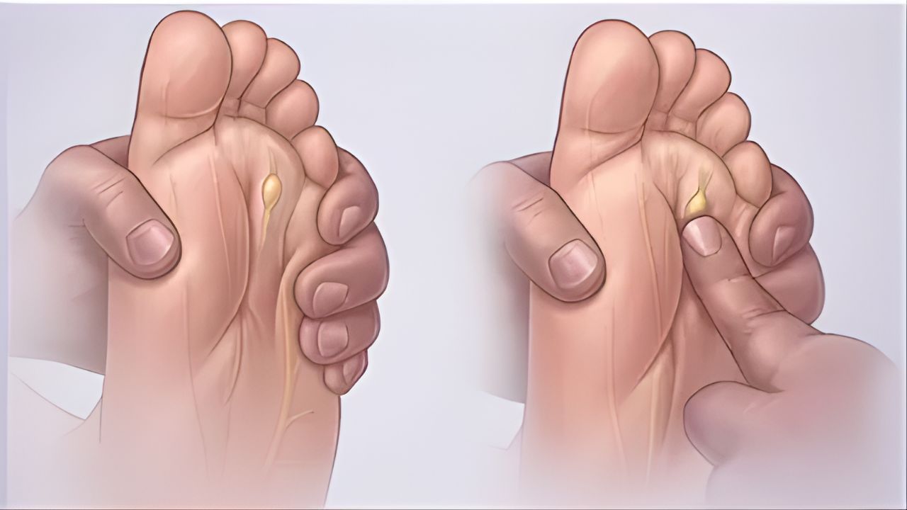 Neuroma de Morton A sensação constante de estar pisando em uma pequena pedra ou em uma bola de gude dentro do sapato, acompanhada de uma